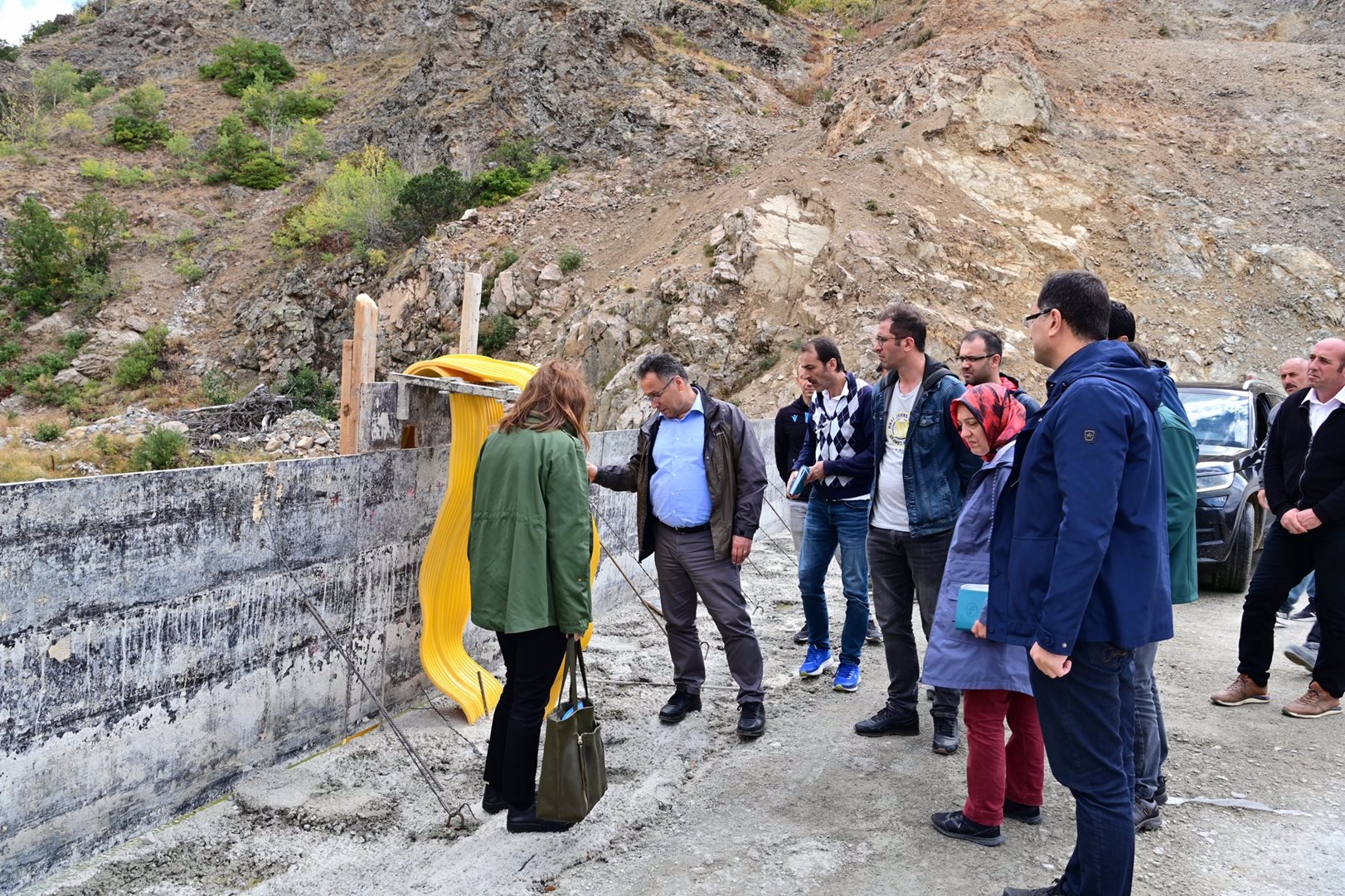 Devlet Su İşleri Teknik Araştırma ve Kalite Kontrol Dairesi (TAKK) Başkanı Aydın Sağlık; beraberinde Bölge Müdürümüz Cengiz Han Kılıçaslan, Bölge Müdür Yardımcısı Olcay Çubukçu, TAKK Dairesi Beton Laboratuvar Şube Müdürü Mehmet Emin Uyanık, Bayburt Şube Müdürü Bülent Kaya, Kalite Kontrol ve Labaratuvar Şube Müdürü Dr. Melike Sezer, Barajlar ve HES Şube Müdürü Dr. Yasemin